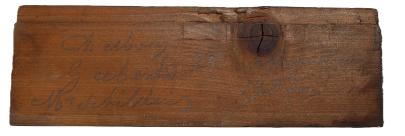 Frederiksoord – Bij het sloopwerk van de Oude Tuinbouwschool zijn een paar bijzondere vondsten gedaan: een tweetal foto’s en achter een voorzetwandje een lat met daarop de namen van twee schilders (Douwe Mooij en Gerrit Menke), die in augustus 1932 het pand geschilderd hebben.
